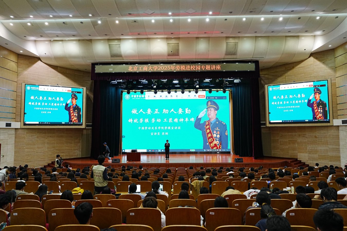 在五一勞動節來臨之際,學校在良鄉校區舉辦2025年“勞模進校園”專題講座。本次活動特邀全國勞動模范代表蘇俐、馮麗朝、牛慶花和黎晶為學生講述自己的奮斗故事,2024級全體本科生參加此次活動。