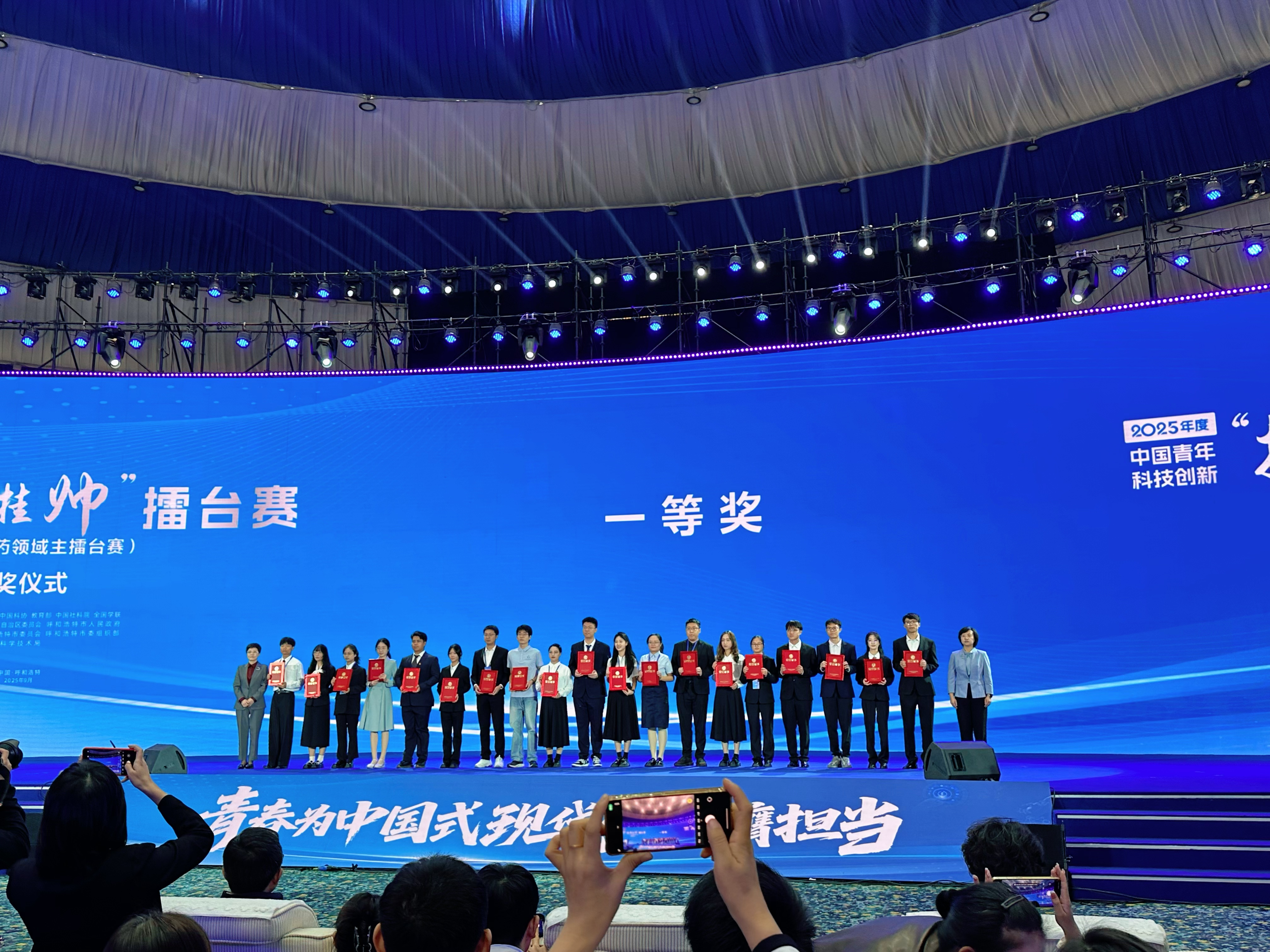 9月28日,在內蒙古呼和浩特舉辦的2025年度中國青年科技創新“揭榜掛帥”擂臺賽“生物醫藥領域”主擂臺賽中,匯聚了全國136所高校、279支隊伍、超800名青年科技英才,他們圍繞動物疫苗、生物發酵、合成生物學等15個前沿方向展開激烈角逐。我校3支團隊入圍終審并全部獲獎,充分展現食品與健康學院服務國家戰略、行業所需的科研擔當。