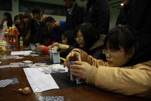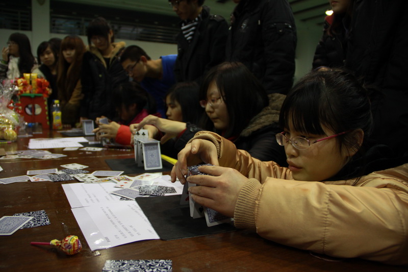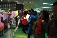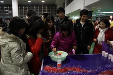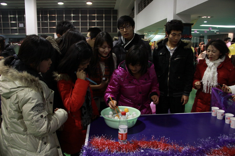 猜詞牌、猜地名、猜電力名詞、猜文學(xué)作品……今年的燈謎涉及范圍更廣,較往年更增添了一些文化“味道”。燈謎墻上的謎題被聰明的同學(xué)們一個一個揭走,又有新的謎題不斷由工作人員更新上來。領(lǐng)獎處排起了長隊,獎品也在不斷地補給。拿到獎品的同學(xué)既興奮又滿足。而另一邊,各學(xué)院組織的活動組成了游園會的另一陣營。隨著歡呼聲、尖叫聲和有力的擊鼓聲,只見乒乓球在參賽同學(xué)的筷子上進行著接力。搶凳子,踩氣球,畫笑臉……一個又一個游戲,同學(xué)不斷加入其中。“很開心,拿到了大獎哦!”計算111班的周玉琢同學(xué)開心地說。