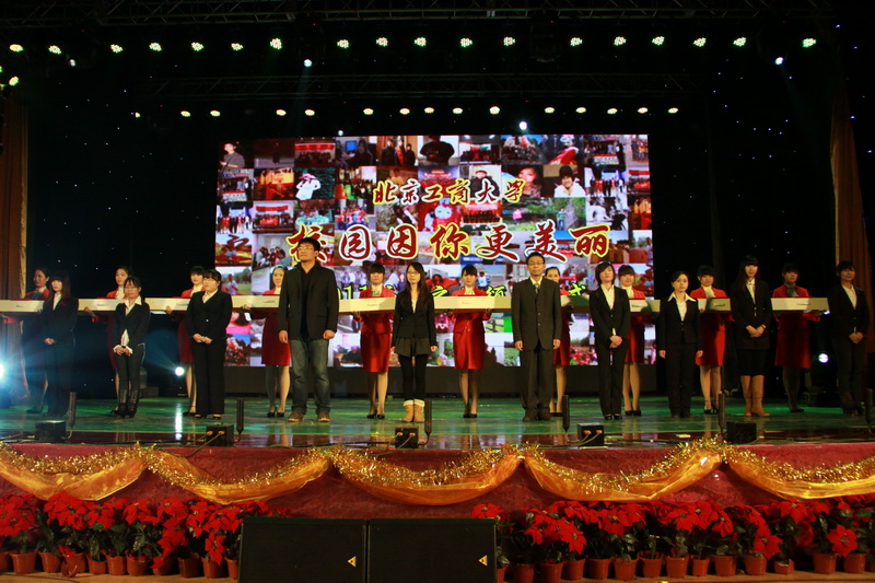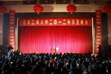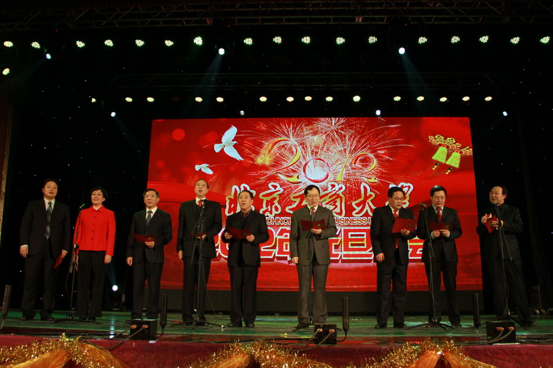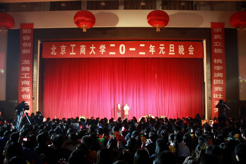 “桃李滿園競吐芬芳,龍騰工商再創輝煌”,12月31日晚,良鄉校區文體館洋溢著歡樂喜慶的節日氣氛,北京工商大學2012年元旦晚會隆重上演。黨委書記孫堯東,校長譚向勇,黨委副書記盧思鋒,黨委副書記、紀委書記張德玉,副校長謝志華、李朝鮮、張耘、呼文亮、方德英與廣大師生及校友代表共聚一堂,喜迎新年。