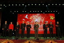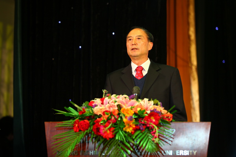全體校領導集體亮相,在新年致辭前合唱歌曲《歌唱祖國》,使現場觀眾驚喜萬分,將晚會推向第一個高潮。嘹亮的歌聲抒發了對祖國母親的熱情謳歌,動情的致辭表達了對學校及全體師生的美好祝福。