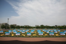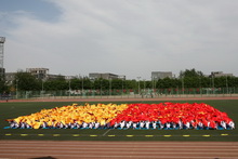 千人團體操是我校歷史上首次大型的團體操表演。開學之初,體藝部王立紅、武博等老師就投入到創編團體操的系列工作中。整個團隊大膽選材、創新設計,在有限的時間內完成了整套動作的編排。據組織者王立紅老師介紹:為給全校師生呈現一出場面宏大、精彩絕倫的表演,從3月初接到任務,4月9日完成整體構思,到第一階段訓練開展,再一步一步修正、理論設計和實際操作相結合,前后花費了一個多月的時間。創編團隊從兩百多首歌曲中,選出了《陽光體育》、《相親相愛》、《我愛你我的北京》三首作為背景音樂。它們既體現了北京精神,又展現了我校和諧的文化氛圍。訓練的過程中,同學們的集體意識逐漸增強。這是老師最愿意看到的,也是學生們最大的收獲。