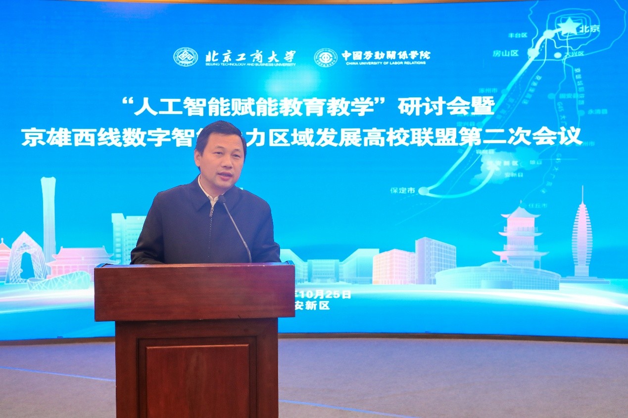 京雄西線數(shù)字智能助力區(qū)域發(fā)展高校聯(lián)盟成立于2024年9月,由我校和中國勞動關(guān)系學院牽頭發(fā)起,聯(lián)合京雄西線房山區(qū)、豐臺區(qū)、保定市等京津冀重要腹地的13所高校共同組建,旨在通過數(shù)字技術(shù)與智能手段,推動教育、產(chǎn)業(yè)、區(qū)域發(fā)展的深度融合。本次會議在鞏固前期合作成果基礎(chǔ)上,進一步聚焦人工智能賦能教育實踐路徑,推動京雄區(qū)域教育資源共享、科研成果轉(zhuǎn)化與人才協(xié)同培養(yǎng)。