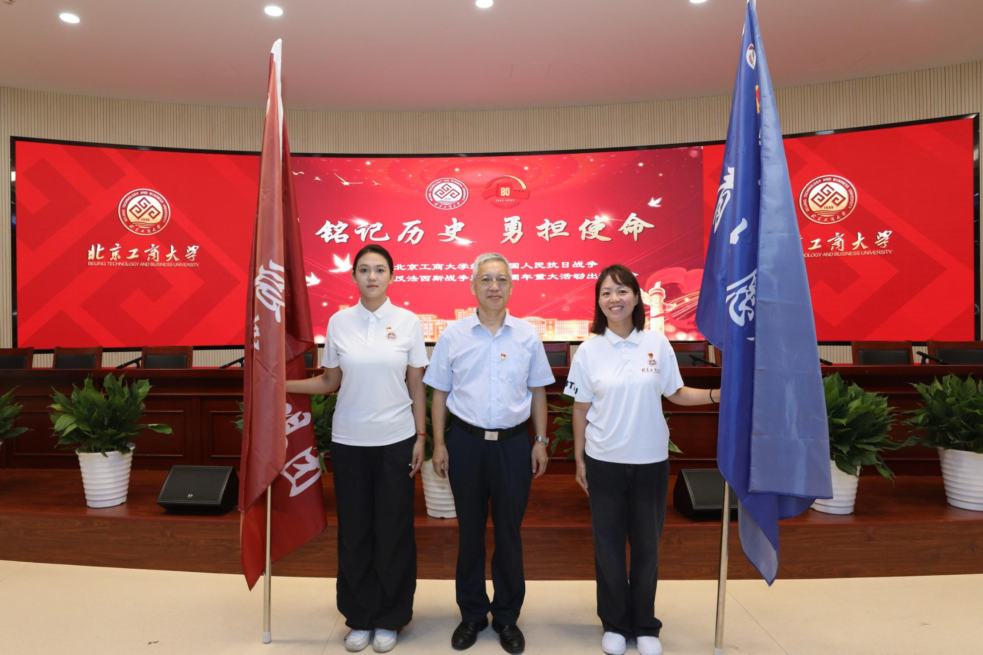 出征大會(huì)上,沈千帆號(hào)召參與活動(dòng)的全體師生以工商人之責(zé)任、擔(dān)當(dāng)、激情投身工作,以工商人之品質(zhì)、品味、品行發(fā)揚(yáng)作風(fēng),以“精精益求精、萬萬無一失”標(biāo)準(zhǔn),向黨和人民交出一份滿分的北工商答卷!校領(lǐng)導(dǎo)為參與活動(dòng)的師生贈(zèng)送慰問品。李中奇為合唱團(tuán)與志愿服務(wù)團(tuán)授旗。