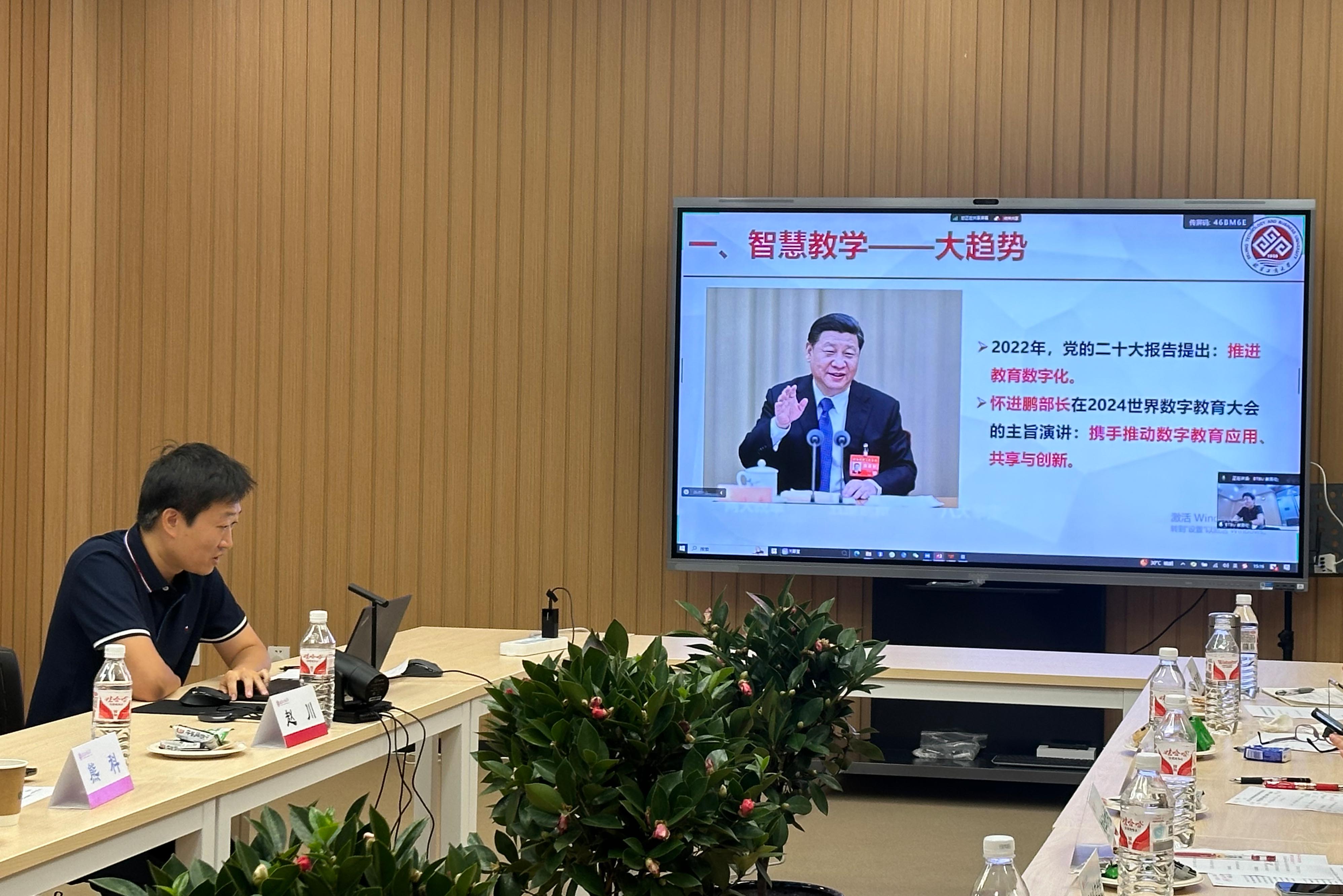 為促進(jìn)我校骨干教師的快速成長,探索數(shù)字技術(shù)與學(xué)科專業(yè)、課程教學(xué)、學(xué)生學(xué)習(xí)、教學(xué)管理的融合,進(jìn)一步打造高素質(zhì)的教師隊(duì)伍,9月18日下午,教務(wù)處在良鄉(xiāng)主校區(qū)開展了數(shù)字技術(shù)賦能本科教學(xué)沙龍活動。這也是本年度第四期教師教育教學(xué)能力提升培訓(xùn)計(jì)劃系列活動。沙龍活動邀請了商學(xué)院副院長趙川、教務(wù)處信息化建設(shè)科科長王博做專題發(fā)言,各教學(xué)單位骨干教師代表、教務(wù)處相關(guān)工作人員40余人參加本次沙龍并交流。沙龍同步通過騰訊會議線上直播。沙龍由教務(wù)處副處長熊科主持。