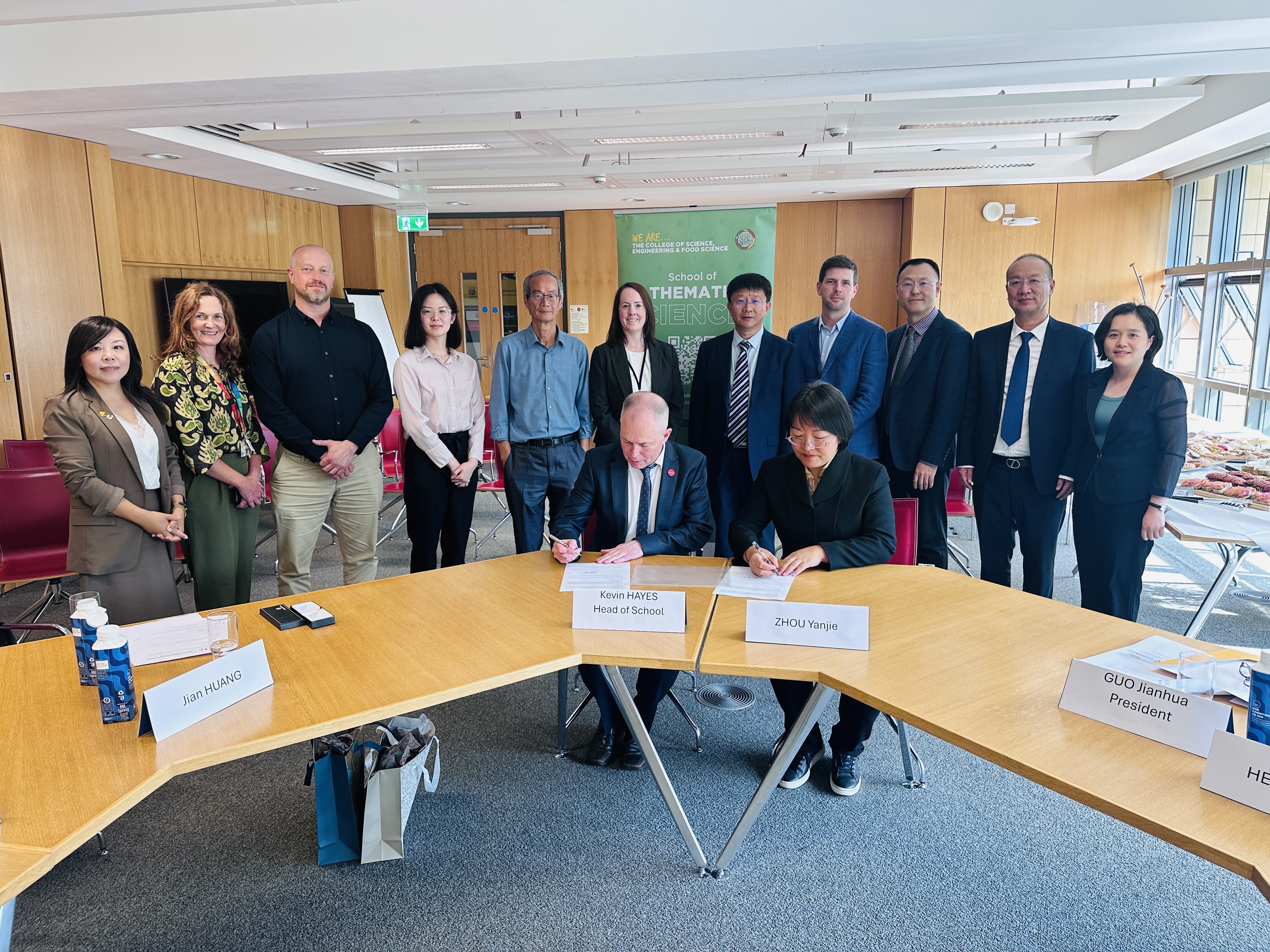 訪問期間,代表團(tuán)分別與考克大學(xué)商法學(xué)部部長西婭·軒尼詩教授(Thia Hennessy)、數(shù)學(xué)科學(xué)學(xué)院院長凱文·海耶斯教授(Kevin Hayes)、食品與營養(yǎng)科學(xué)學(xué)院院長阿蘭·凱麗教授(Alan Kelly)、法學(xué)院院長馬克·普斯提教授(Mark Poustie)以及相關(guān)專業(yè)項目的課程負(fù)責(zé)人和專業(yè)教學(xué)主任等相關(guān)人員進(jìn)行深入會談,重點討論了中外合作辦學(xué)機(jī)構(gòu)合作意向、學(xué)生海外學(xué)習(xí)支持服務(wù)保障、多渠道師生交流互換、碩博聯(lián)合培養(yǎng)項目、國際科研項目合作等議題。會談結(jié)束后,郭建華校長分別見證了我校數(shù)統(tǒng)學(xué)院與考克大學(xué)數(shù)學(xué)科學(xué)學(xué)院、我校食品與健康學(xué)院與考克大學(xué)食品與營養(yǎng)科學(xué)學(xué)院簽署院級合作意向書,雙方學(xué)院未來將在專業(yè)建設(shè)、師資交流和高層次人才培養(yǎng)方面開展更深入更廣泛的合作與交流。