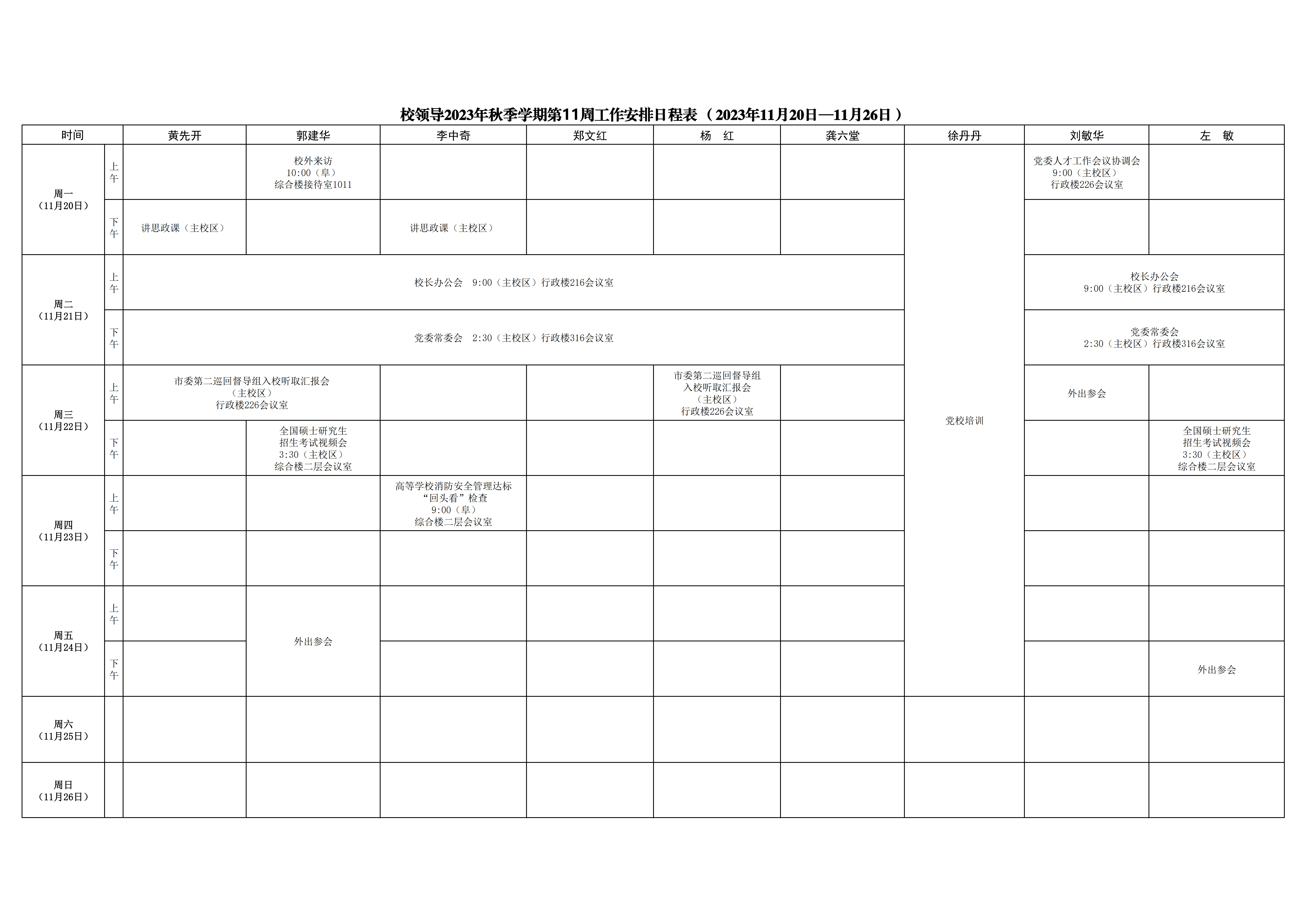 第11周會(huì)議安排
