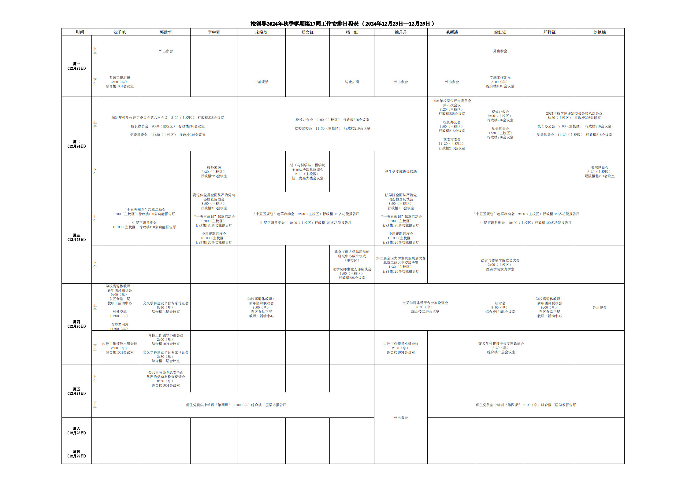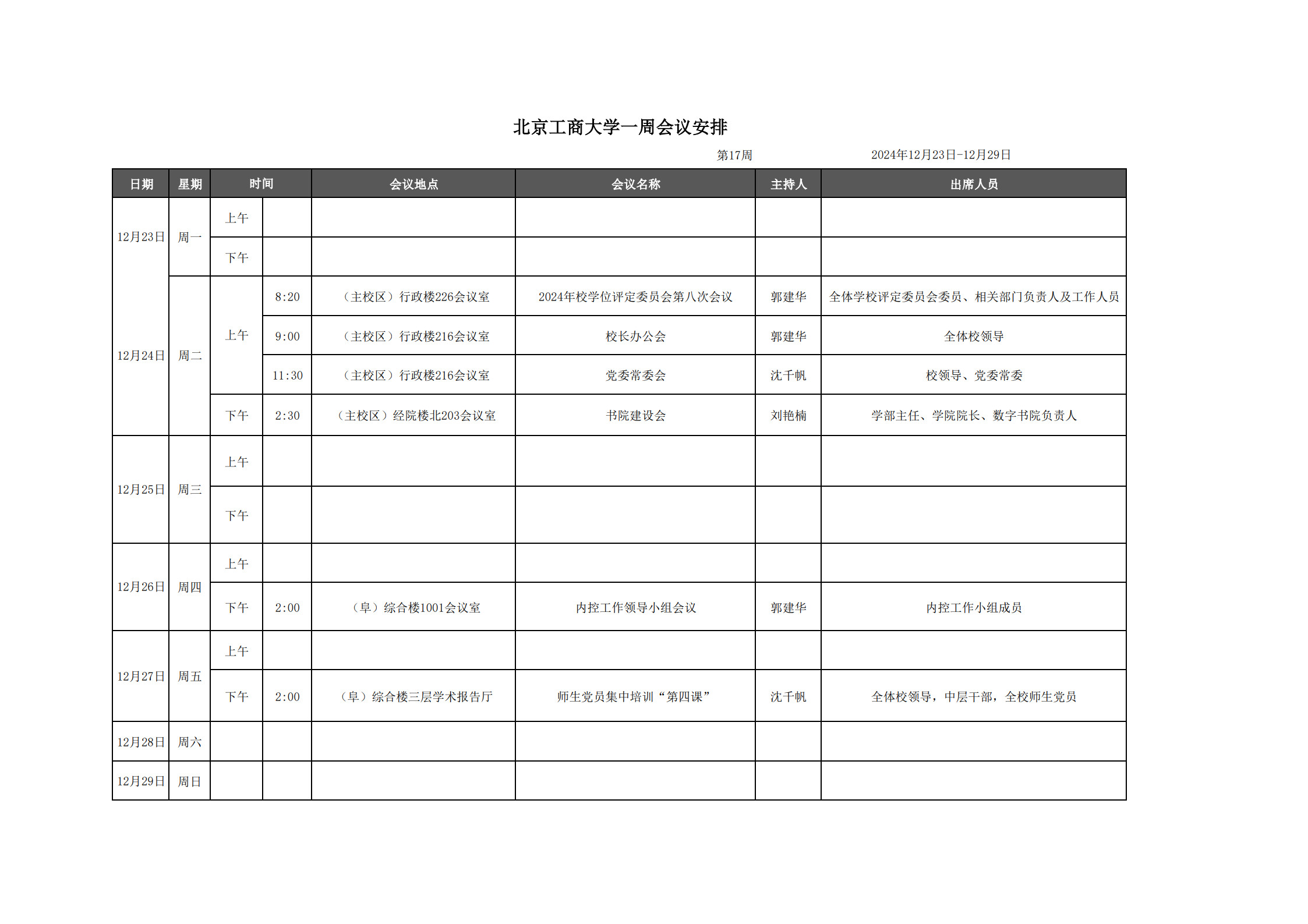 第17周會(huì)議安排