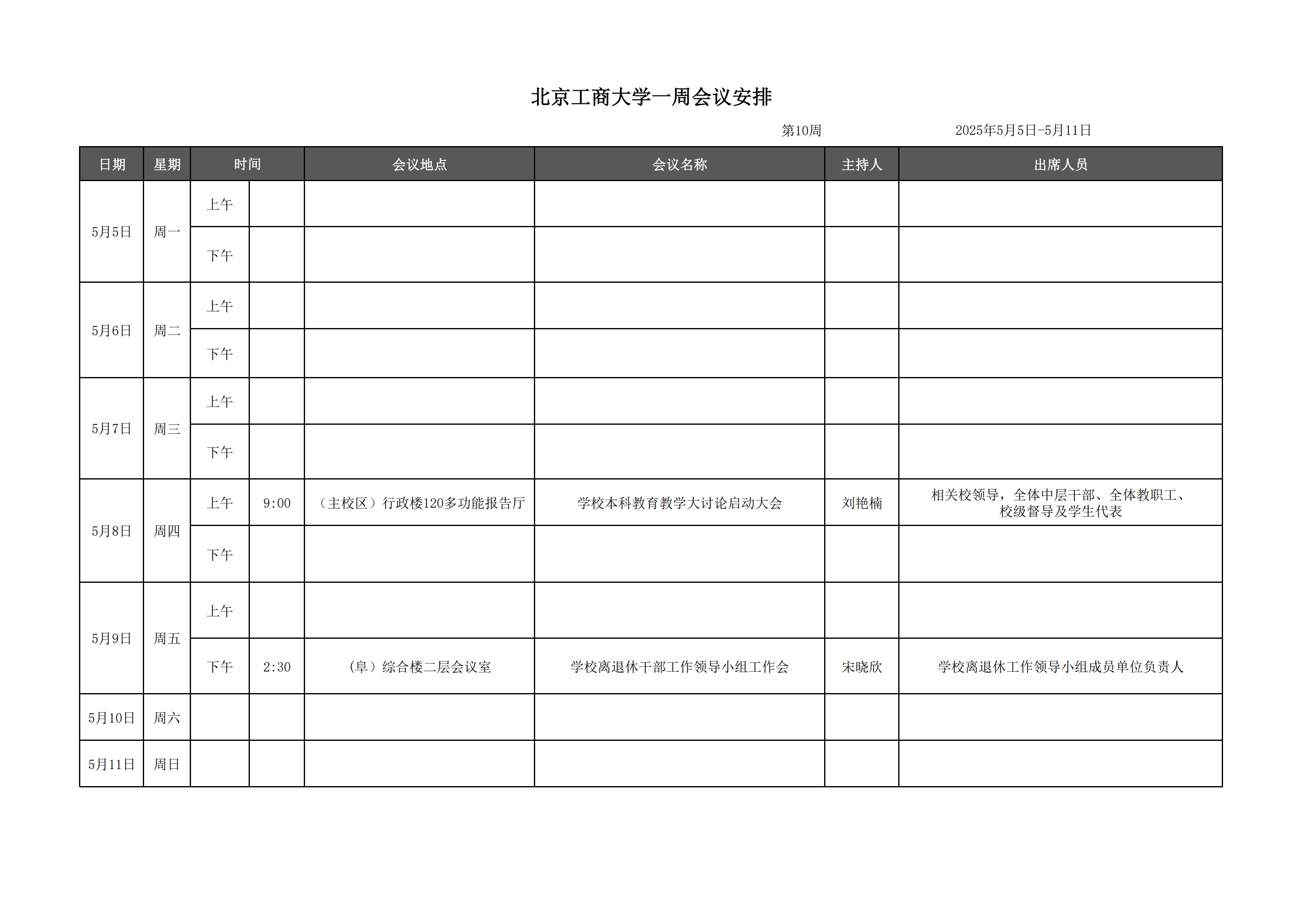 第10周會議安排