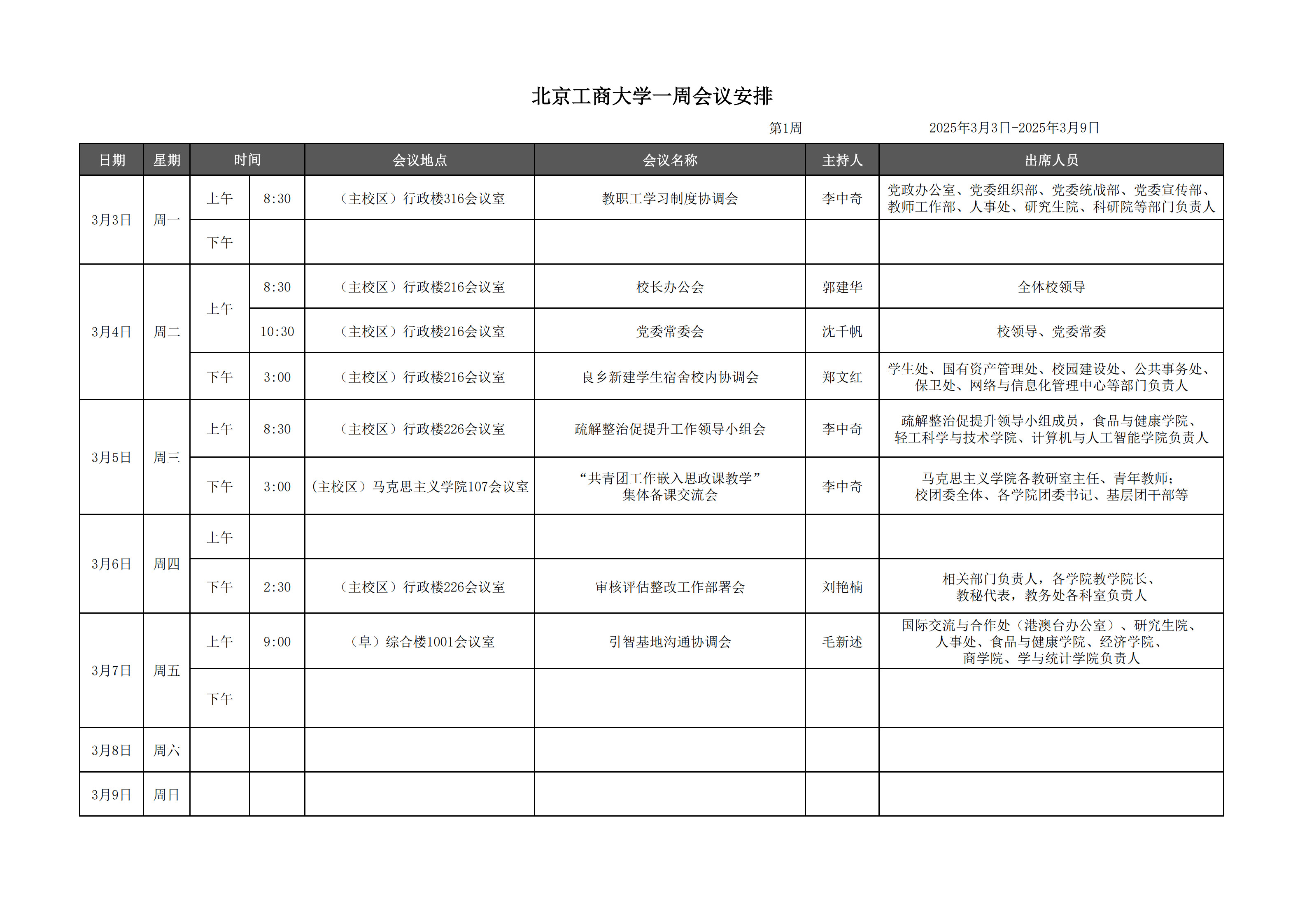 第1周會議安排
