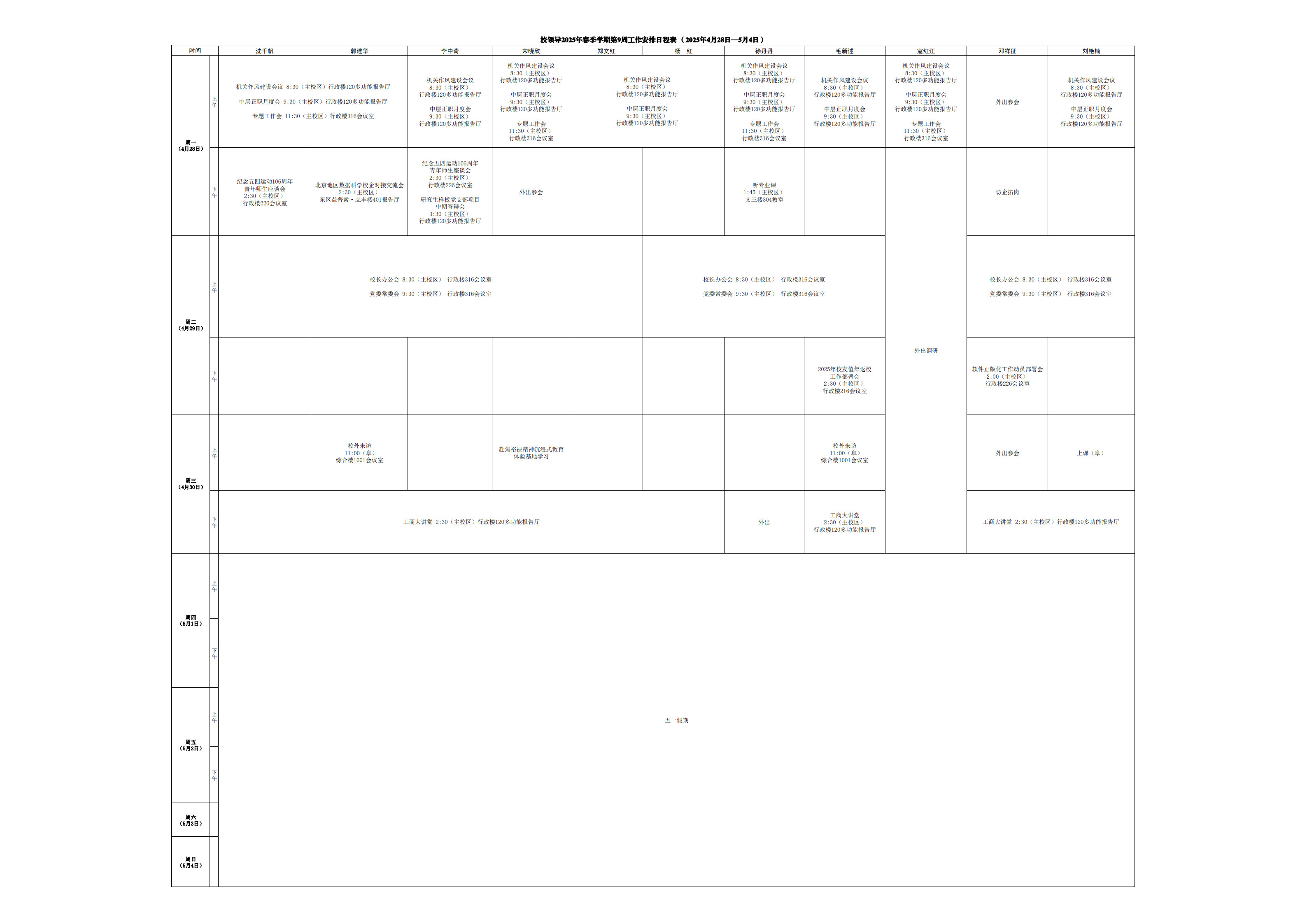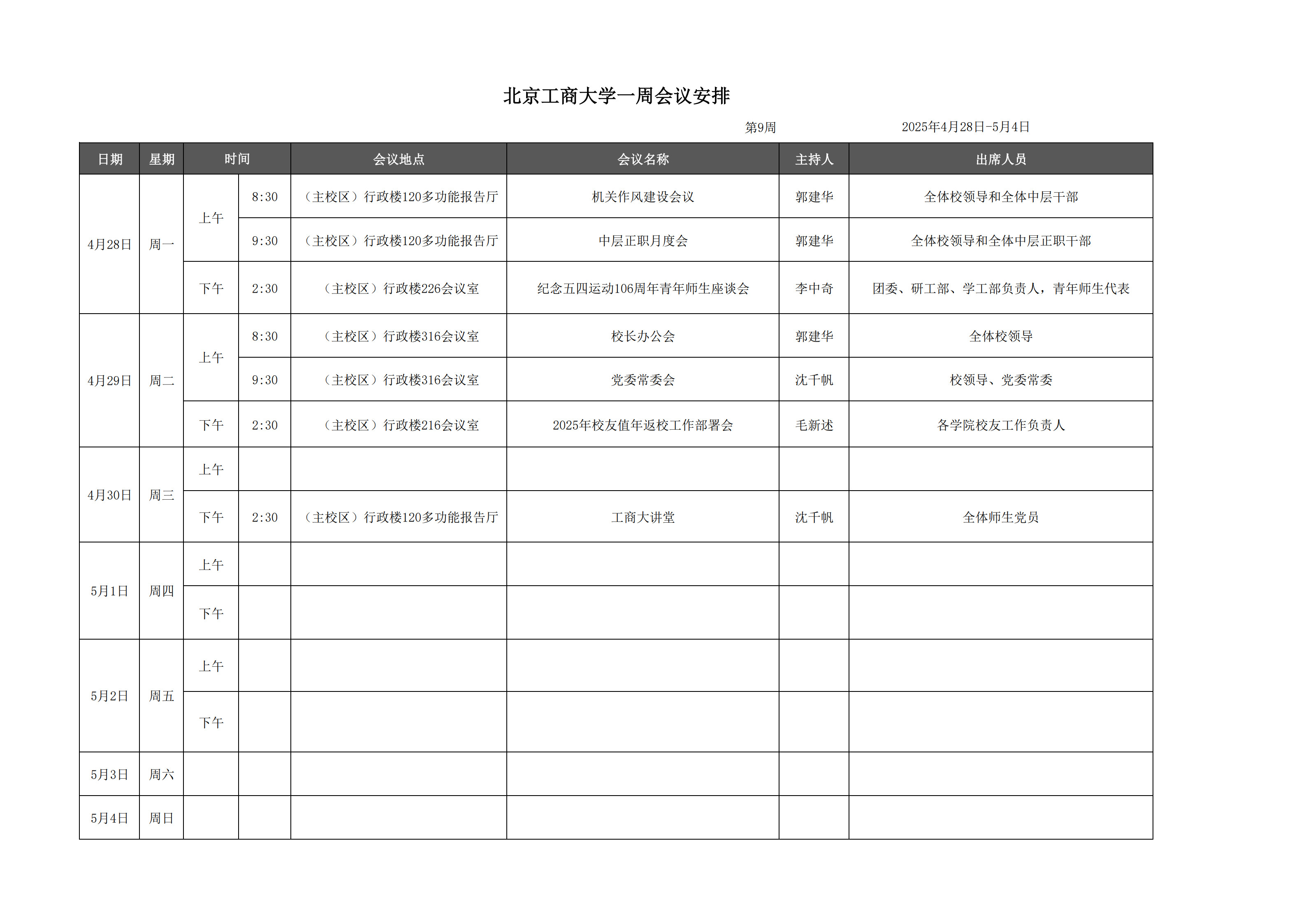 第9周會(huì)議安排