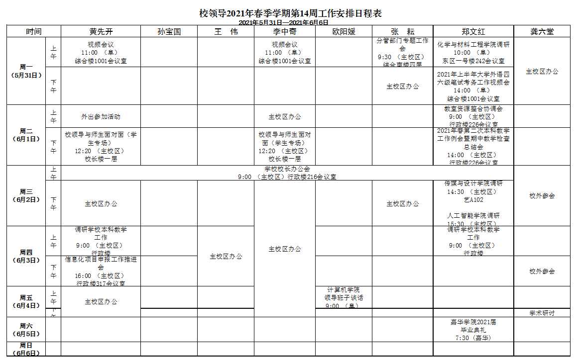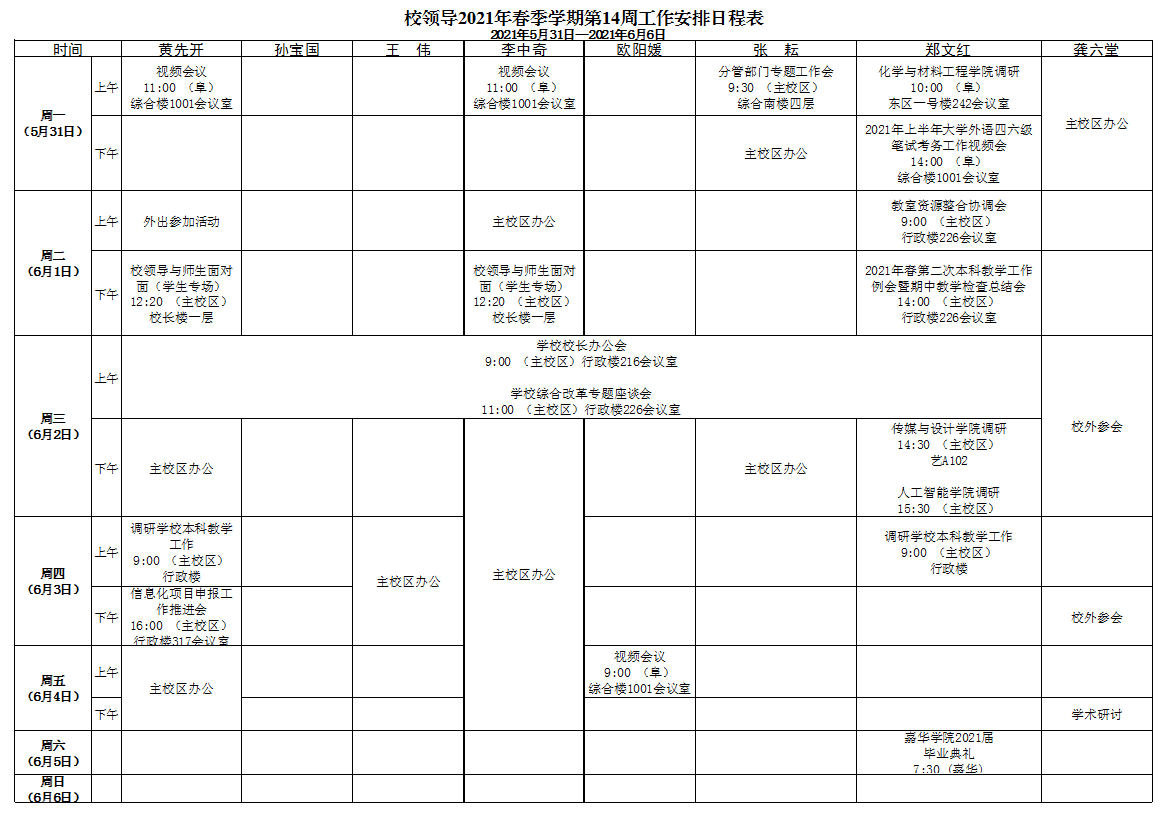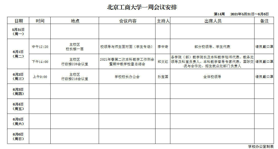 第14周會議安排