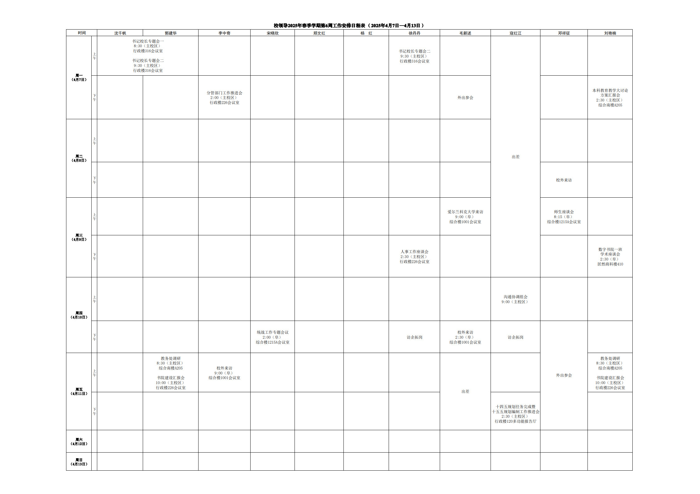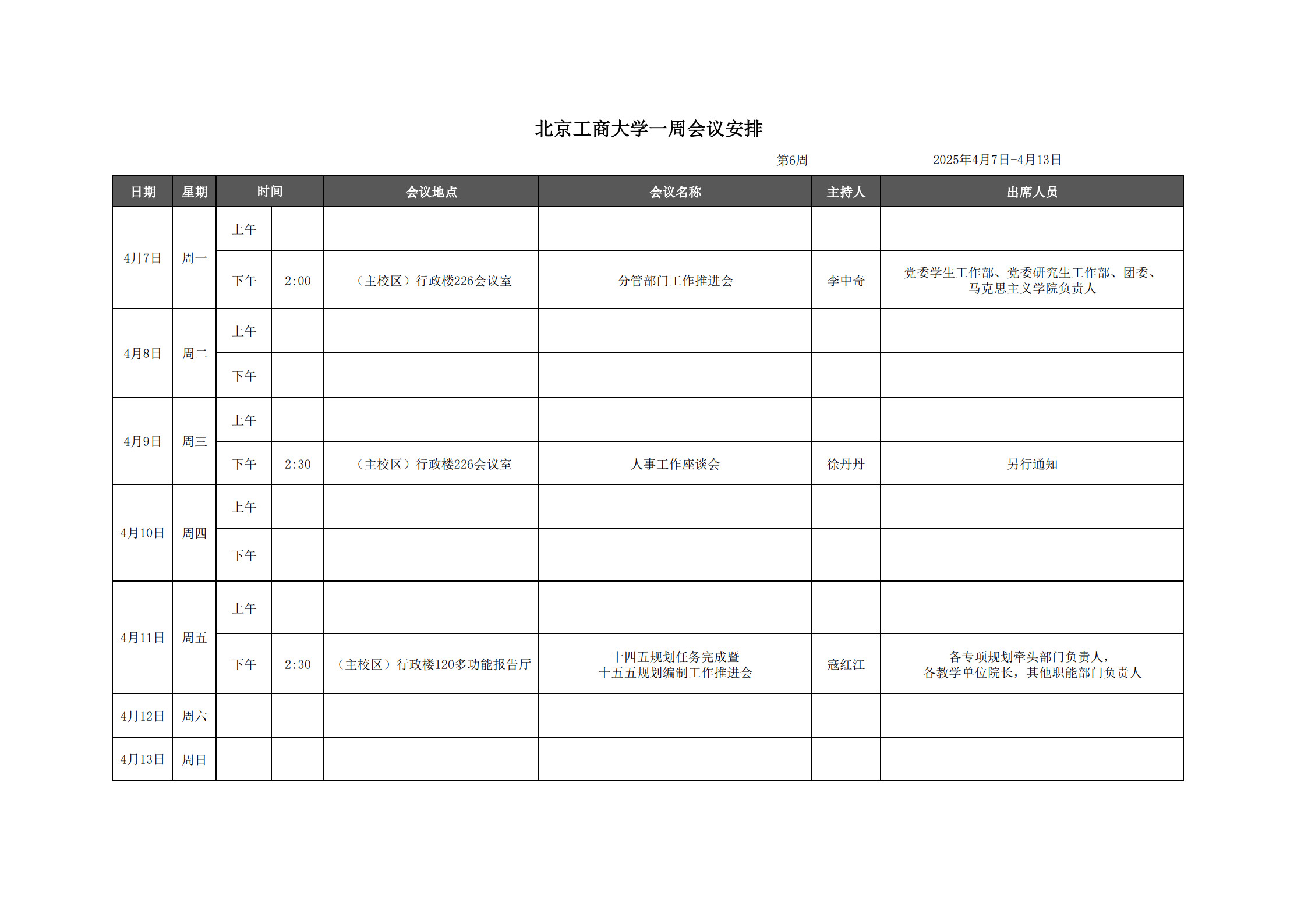 第6周會(huì)議安排