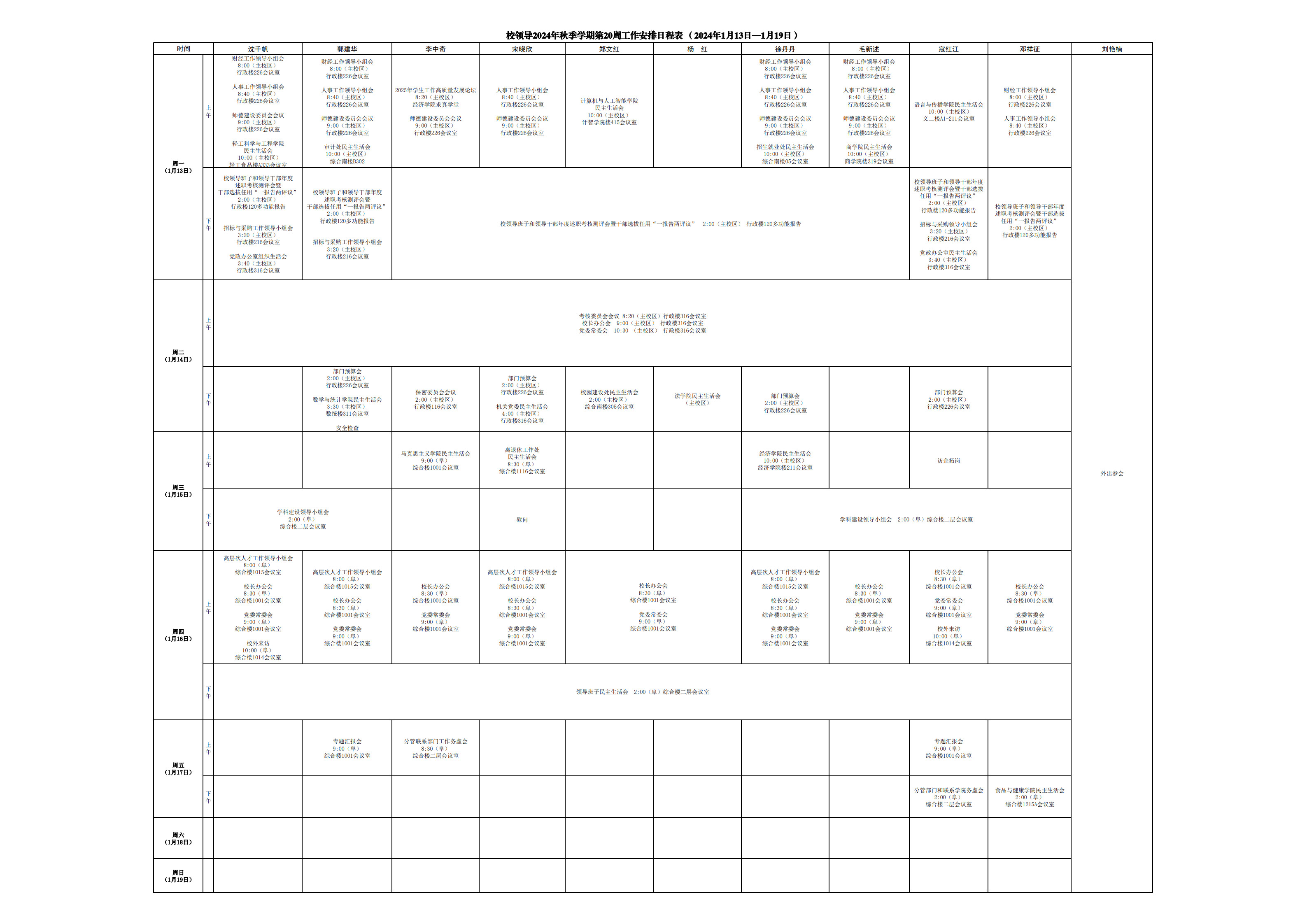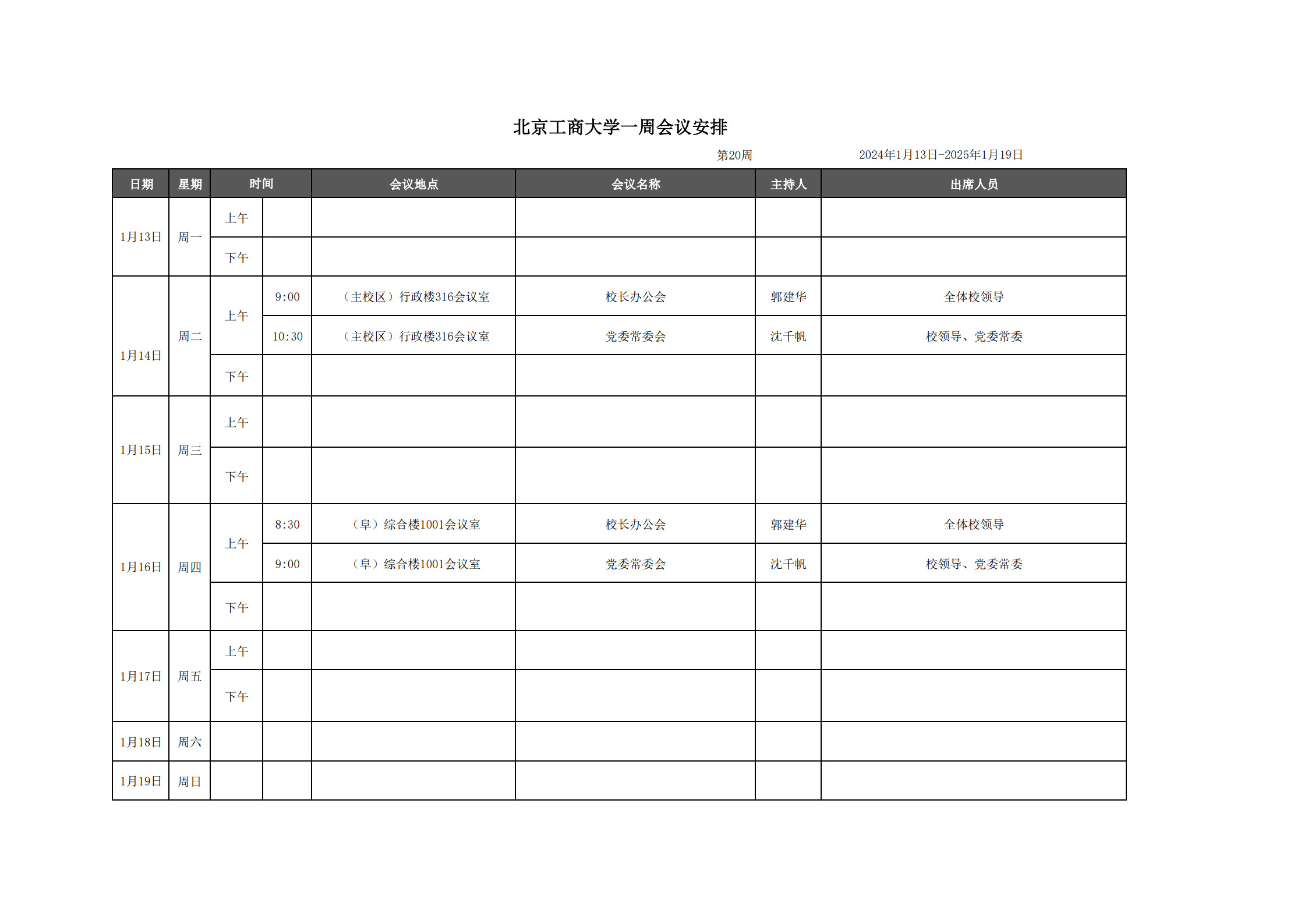 第20周會(huì)議安排