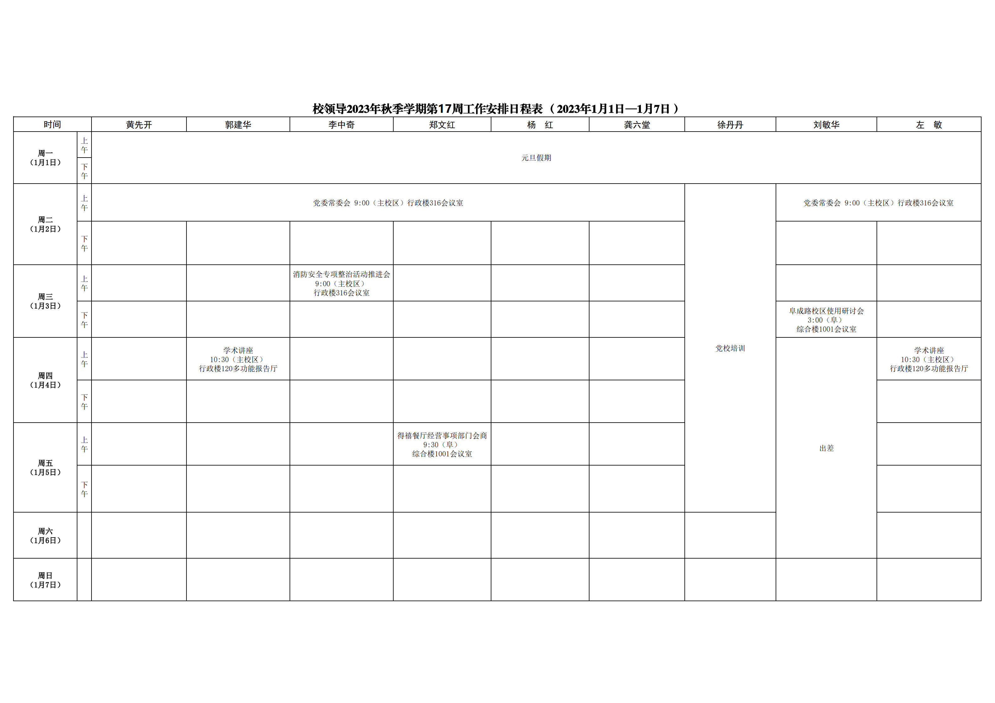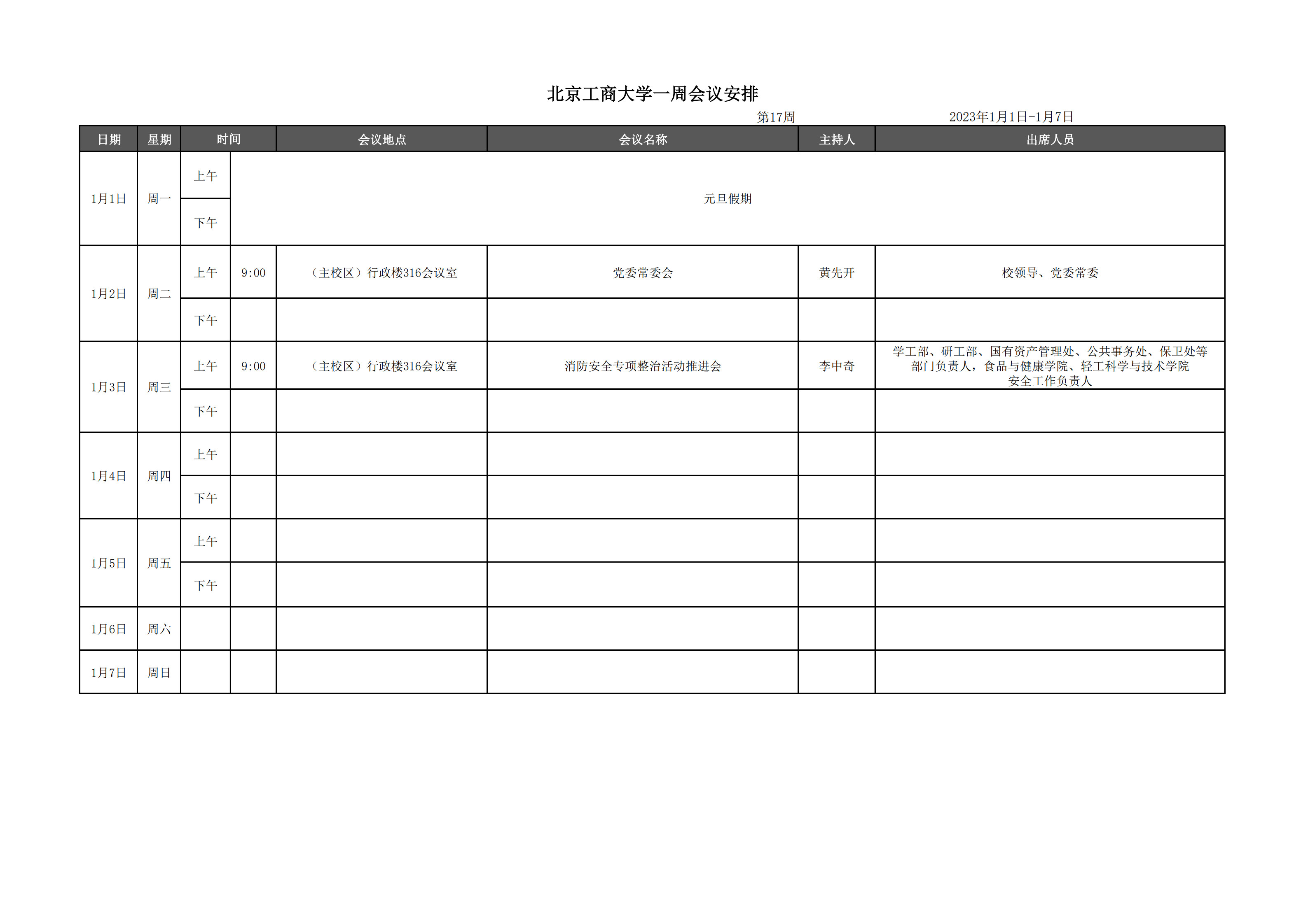 第17周會議安排