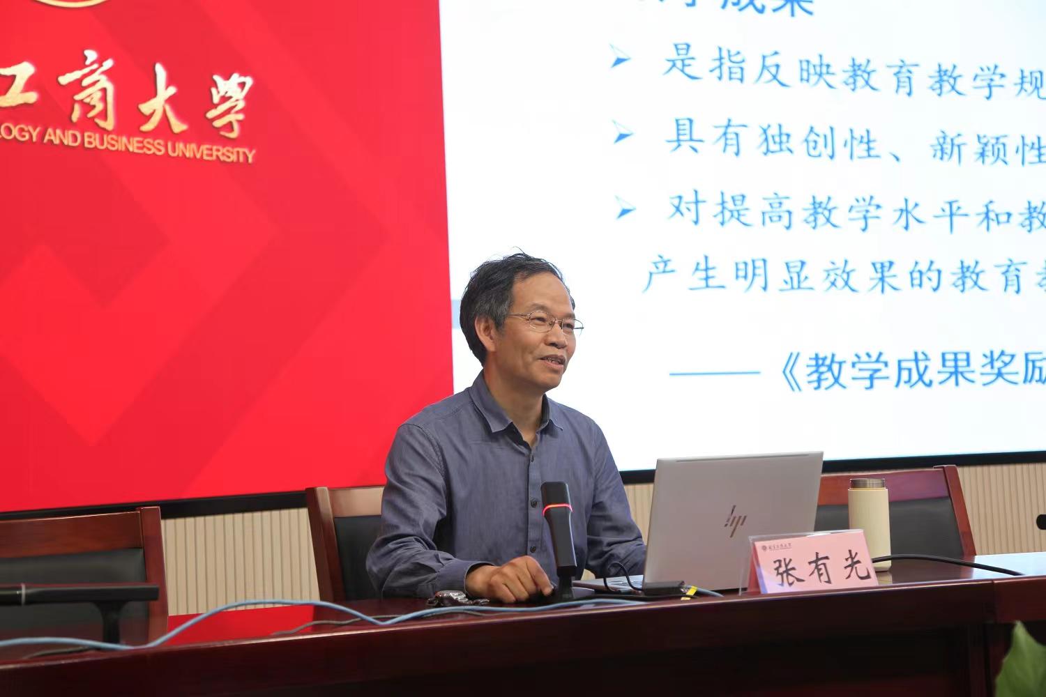 張有光教授以他在2018年獲得的國家級教學成果獎為例,從教學問題的凝練、解決問題的方法、教學成果的創(chuàng)新點和成果的推廣應用四個方面與在場教師們進行了交流,強調成果的原創(chuàng)性、實用性和推廣價值的重要性。他提出,一個優(yōu)秀的教學成果不僅要在理論上有所創(chuàng)新,更要在實際教學中得到有效應用,能夠對學生的學習和成長產生積極影響。張教授結合自己多年的教學實踐,闡述了如何通過課程設計、教學方法和評價體系的改革來激發(fā)學生的學習興趣,提高教學效果。