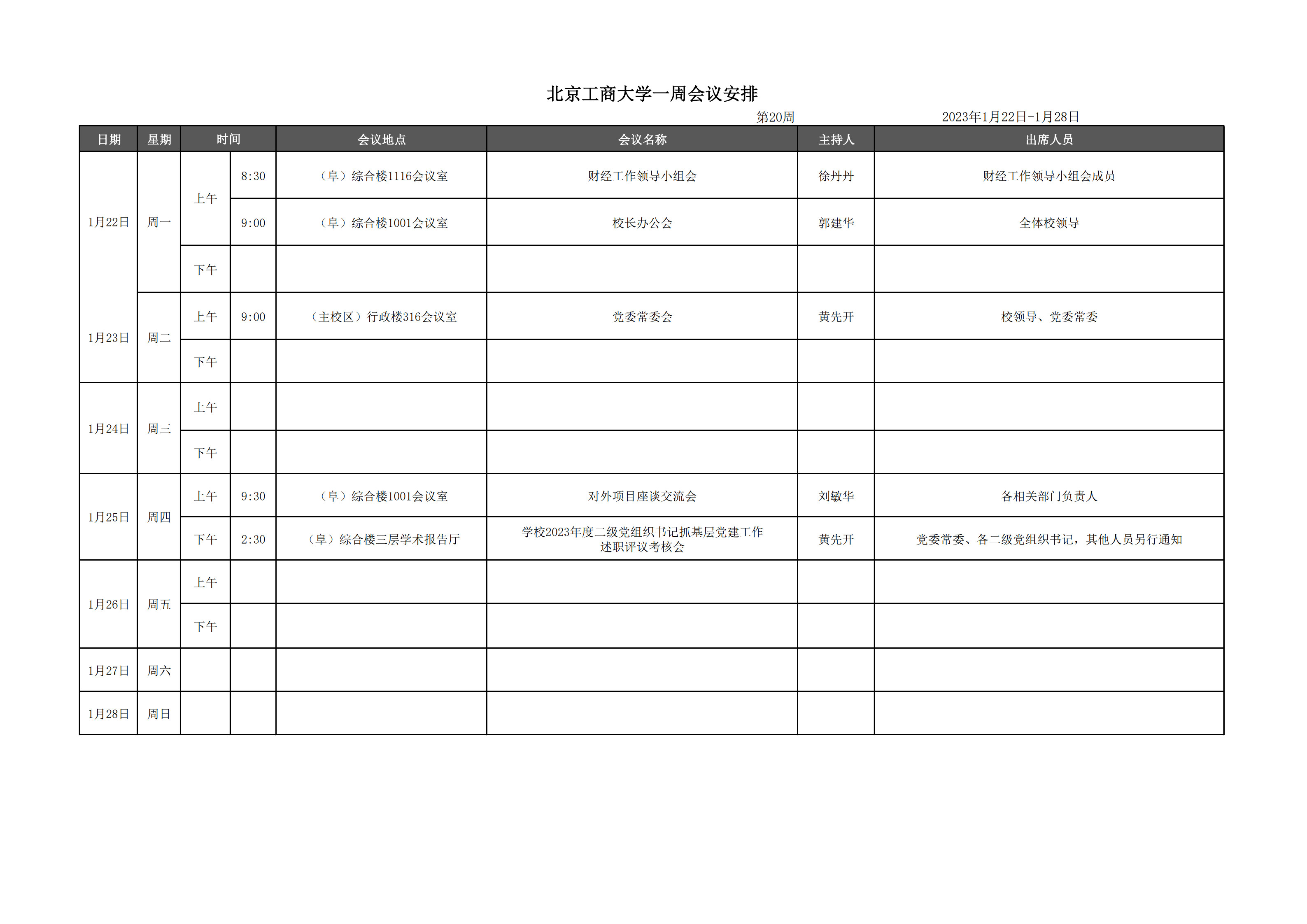 第20周會(huì)議安排