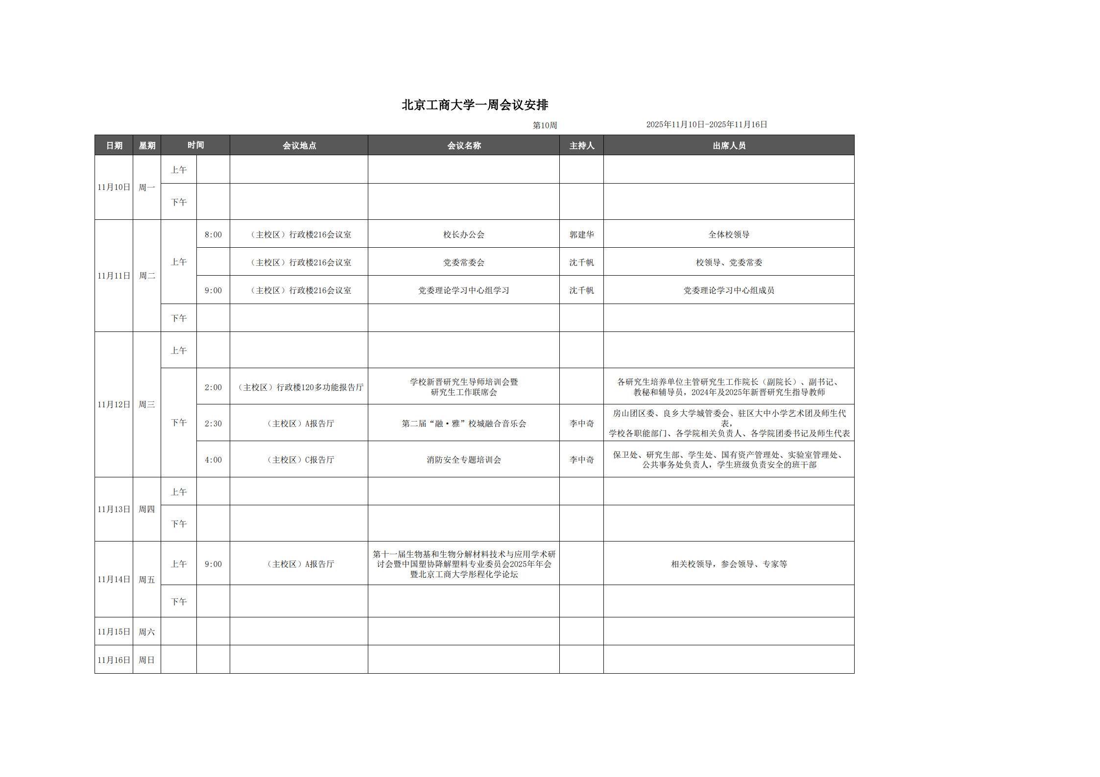 第10周會議安排