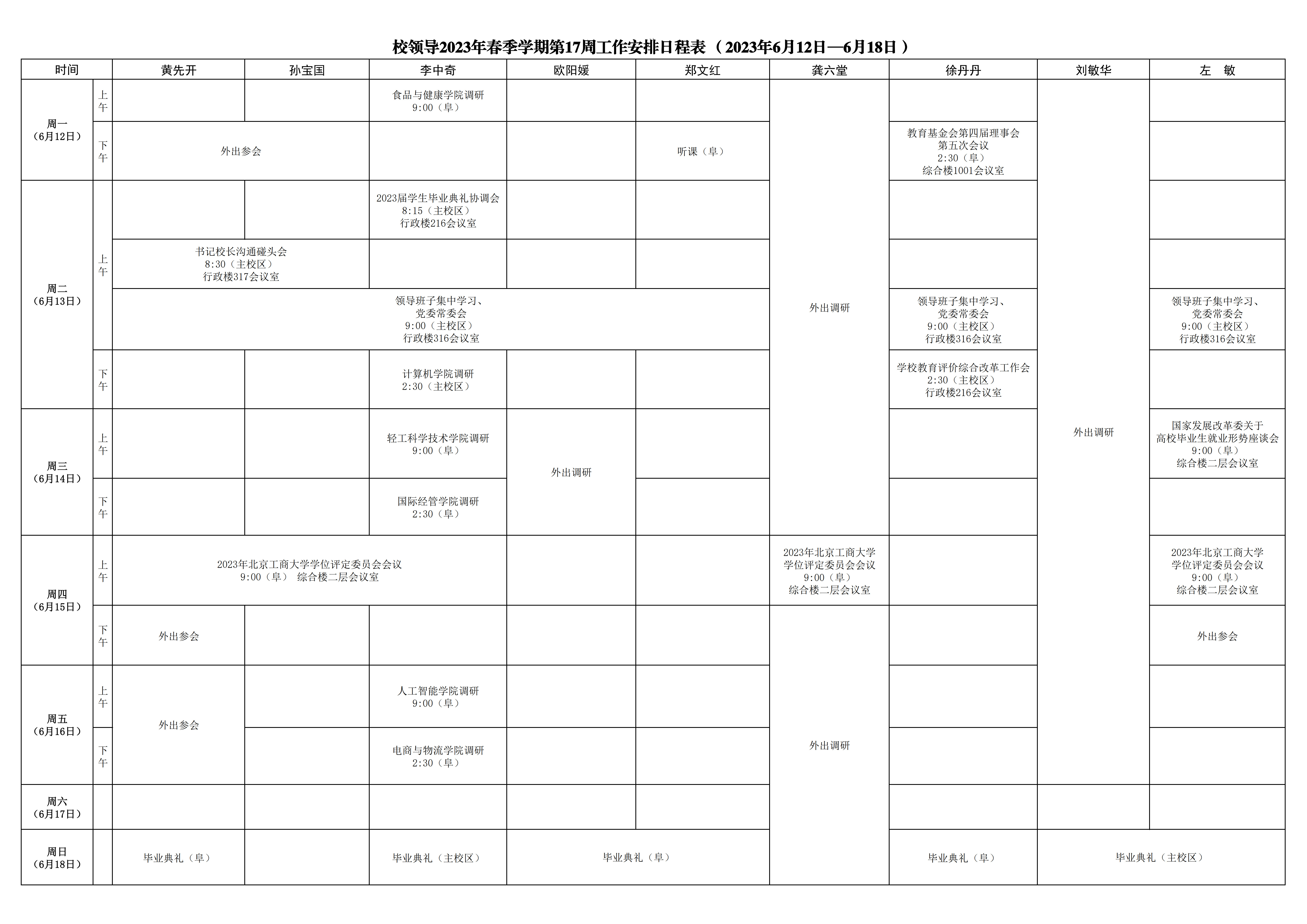 第17周會(huì)議安排