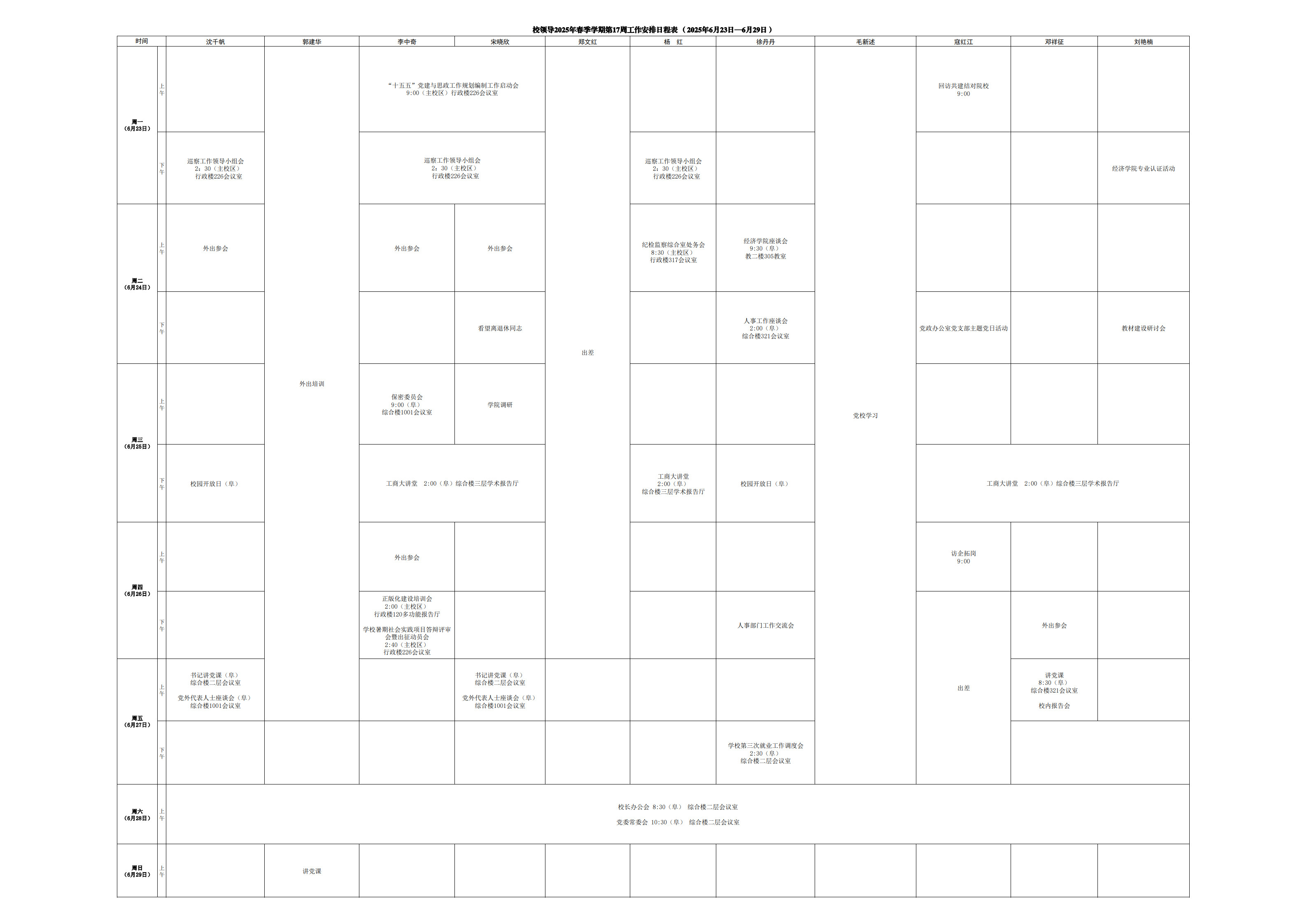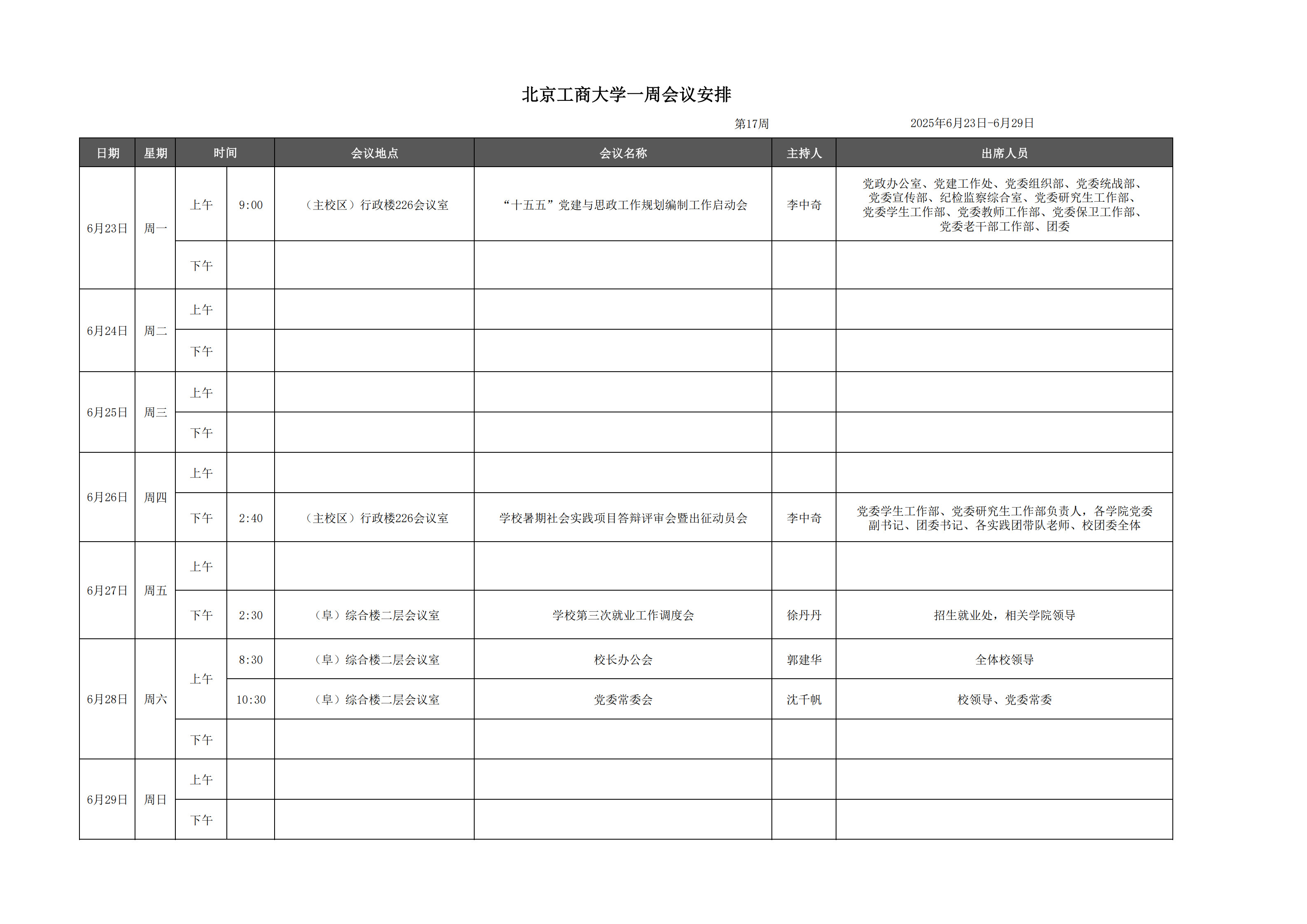 第17周會議安排