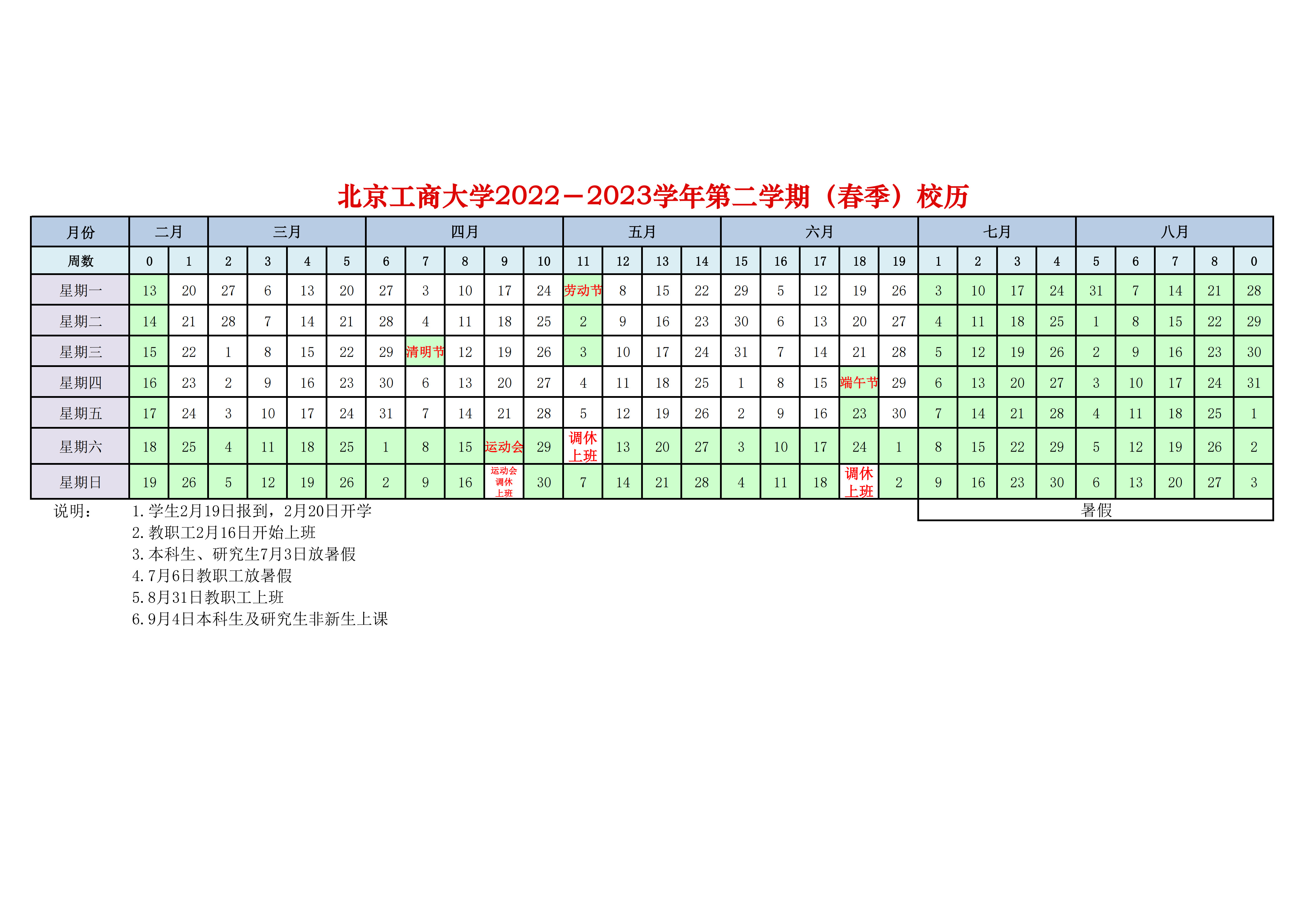 2022-2023學年第二學期(春季)校歷