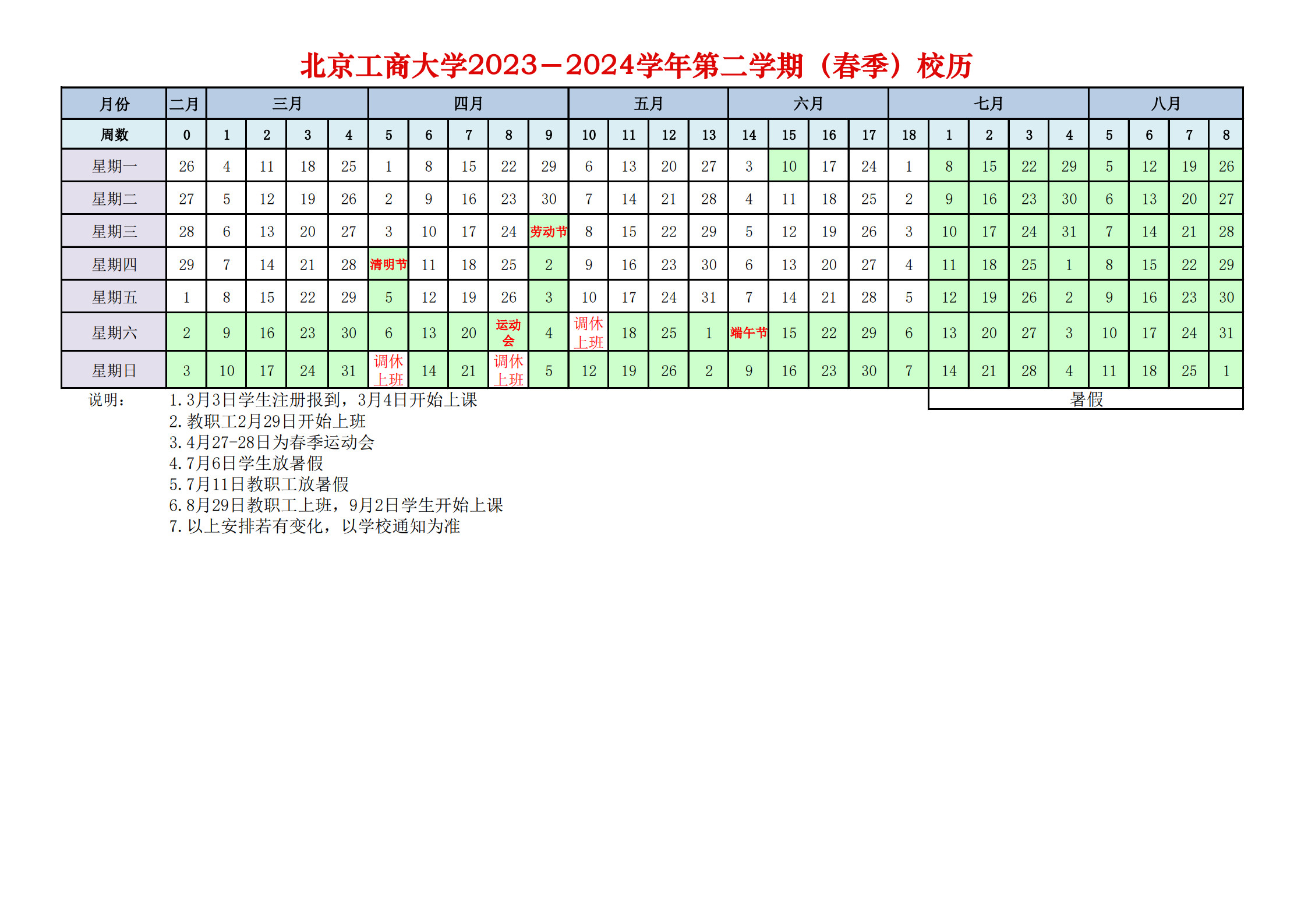 2023-2024學年第二學期(春季)校歷