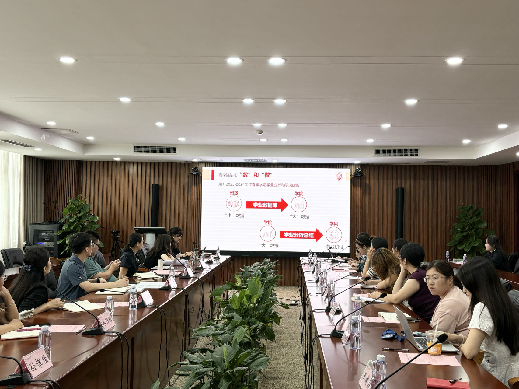 隨后,各學院分別匯報了學風建設工作。經濟學院以“落實課堂教育、重視學業扶育、聚焦專業提育、瞄準課后優育和貫徹就業幫育”入手,打造學風建設“五育互聯”優培模式;商學院堅持以創促學,成立新商科青創中心,實施共“商”青創質量工程,提高商科人才數字化能力;食品與健康學院實施“筑基工程”專項行動,多措并舉做好學困生學業幫扶;輕工科學與工程學院創新開設“自律課堂”,激發學生自主學習意識,營造比學趕超的良好氛圍;數學與統計學院立足專業特色,打造“18634”學風建設工作體系,全方位助力學生學業成長;計算機與人工智能學院針對學生學業痛難點,注重班主任作用發揮,鼓勵班主任深入班級,構建師生互動、教學相長的良好互動;法學院以“盈寸致遠”讀書會撬動學生學習內生動力,全面提升專業素養;語言與傳播學院注重學習習慣養成,嚴格執行課堂考勤制度,端正學風班風;設計與藝術學院實施朋輩互助、以賽促學、嚴查考勤三大舉措,扎實推進學風建設工作。